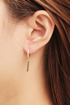 14K Dipped CZ Hoop Thin Bar Drop Huggie Earrings
