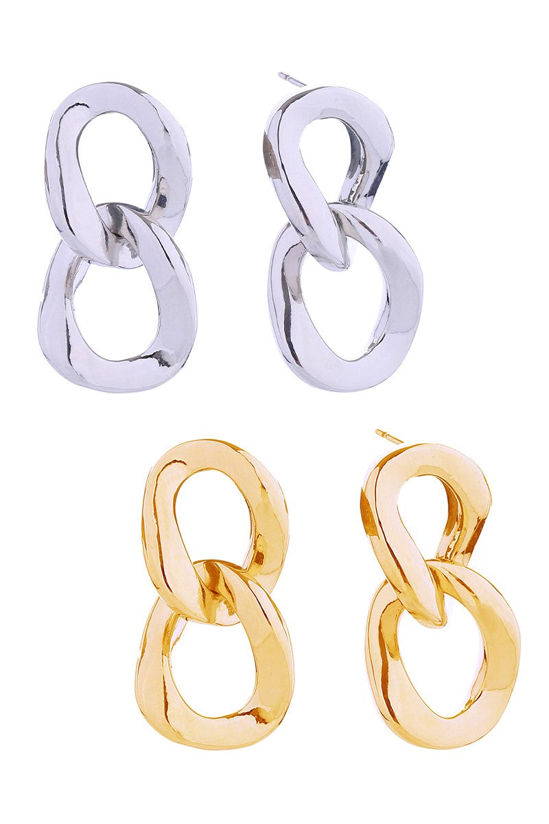 14K Gold-Dipped Dangle Post Earrings - 14K Gold-Dipped Link Design - Made in South Korea - Hypoallergenic Earrings - Brass Base - Lead, Cadmium, and Nickel Tested **Size: Approx. 1.2" Drop Length**