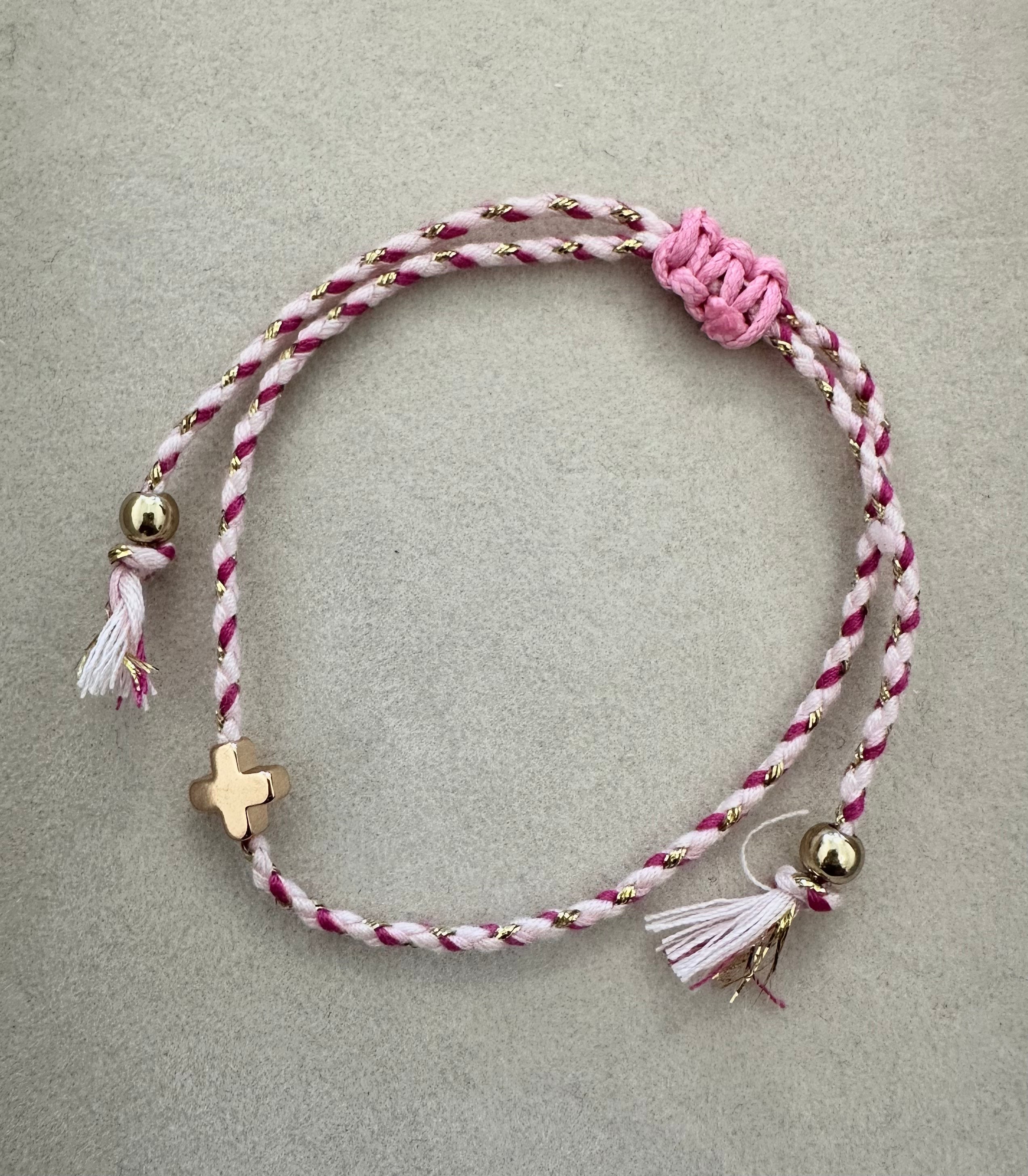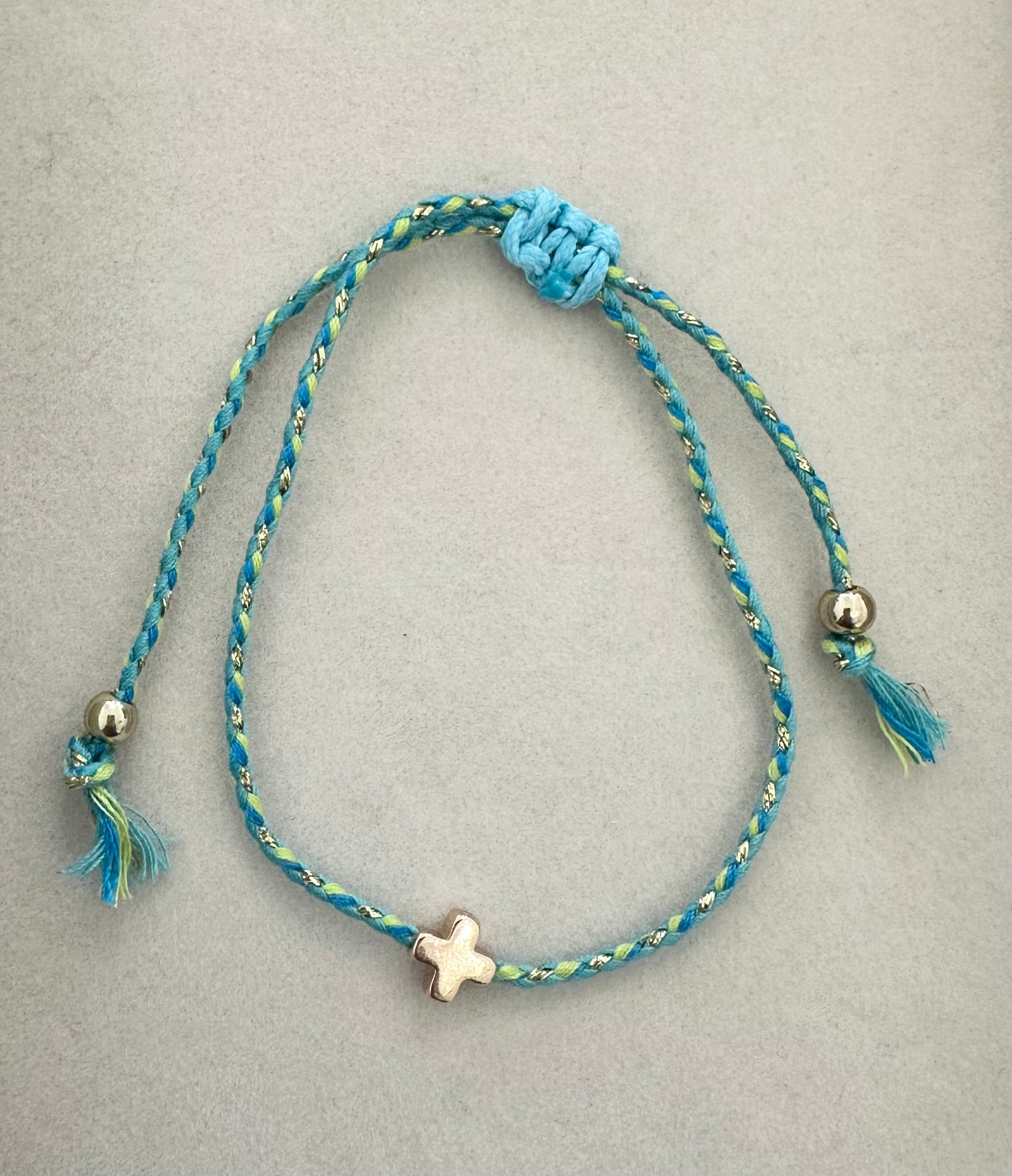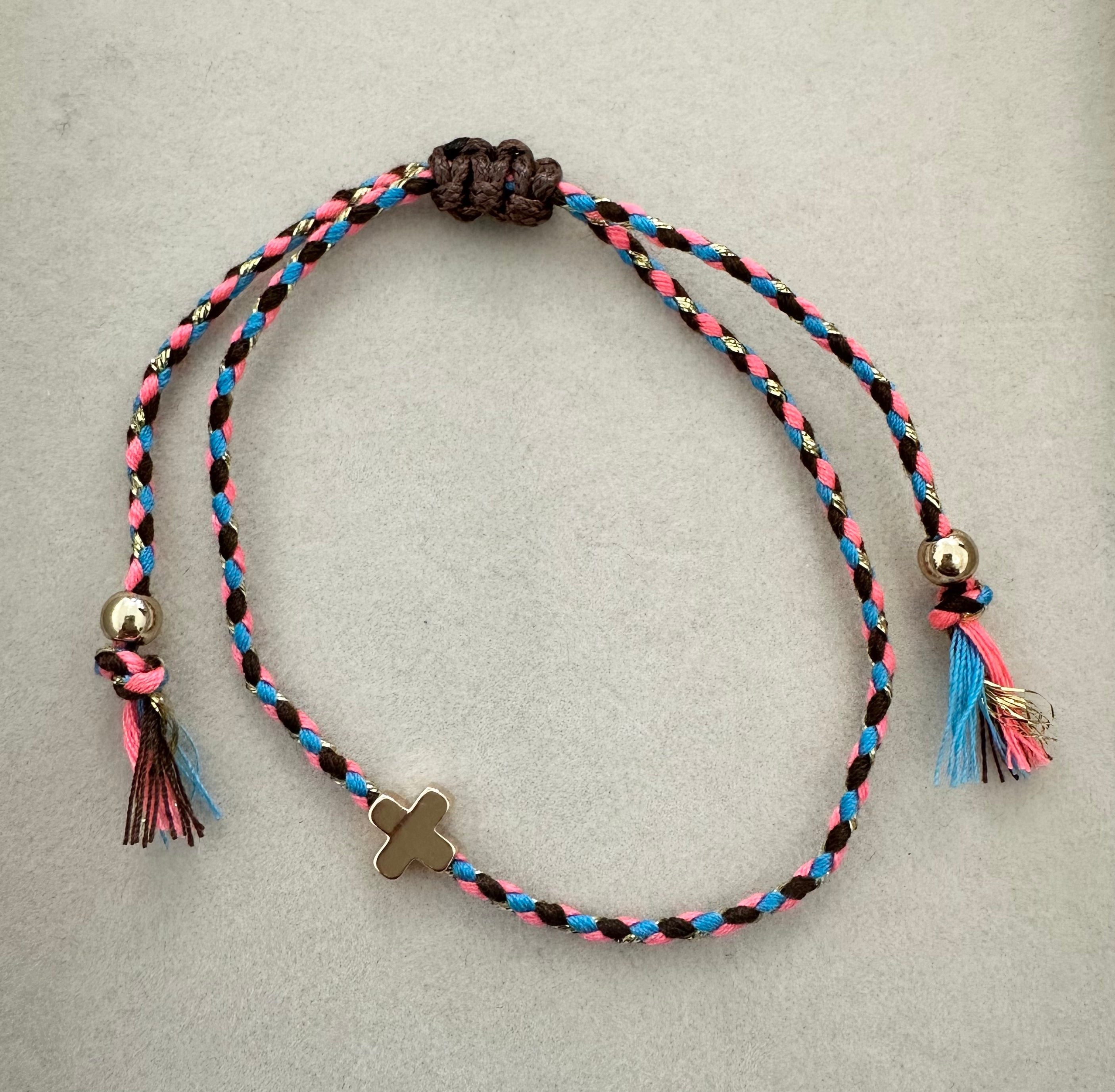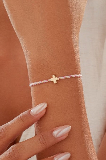 Elevate your style with the 18k Stainless Steel Corded Cross Charm Bracelet. Featuring a vibrant rope chain available in blue, multi, pink, or white, this bracelet is adorned with multiple charming accents. Crafted from hypoallergenic stainless steel, it ensures comfort for sensitive skin while being waterproof for everyday wear. Perfect for adding a colorful, meaningful touch to any outfit.