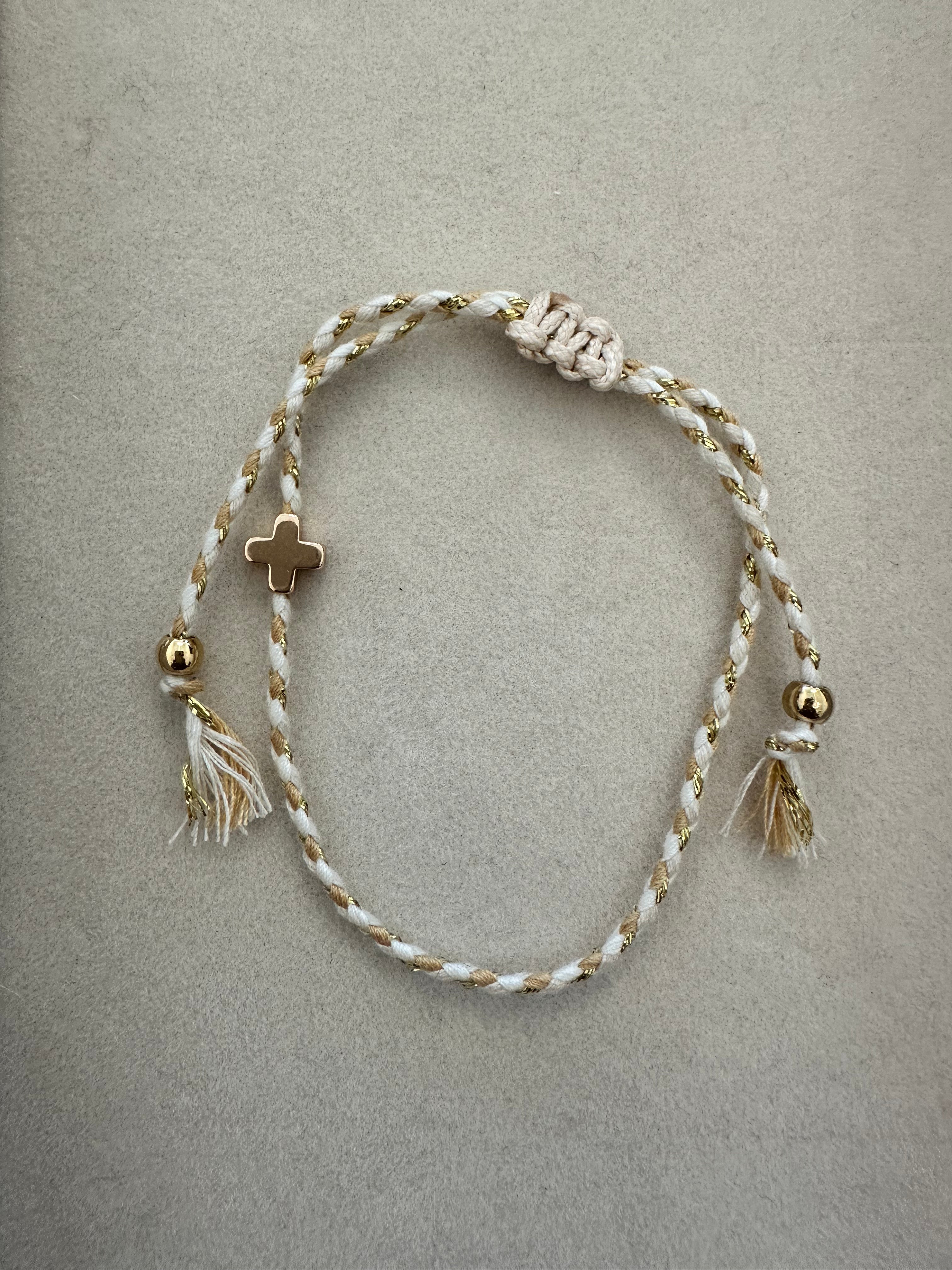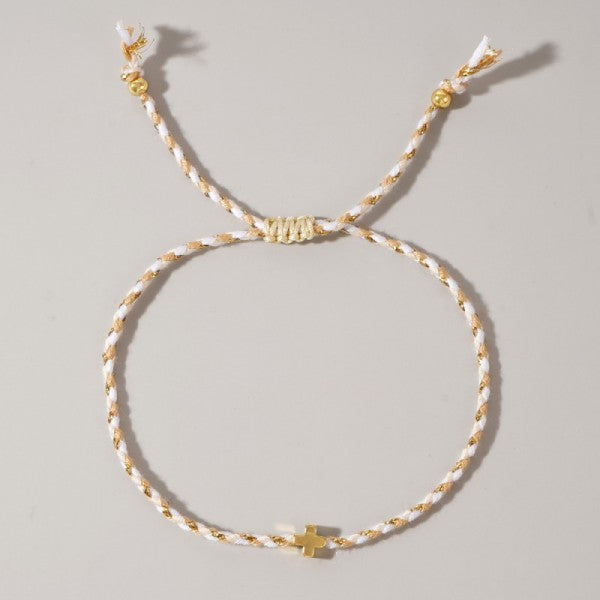 Elevate your style with the 18k Stainless Steel Corded Cross Charm Bracelet. Featuring a vibrant rope chain available in blue, multi, pink, or white, this bracelet is adorned with multiple charming accents. Crafted from hypoallergenic stainless steel, it ensures comfort for sensitive skin while being waterproof for everyday wear. Perfect for adding a colorful, meaningful touch to any outfit.