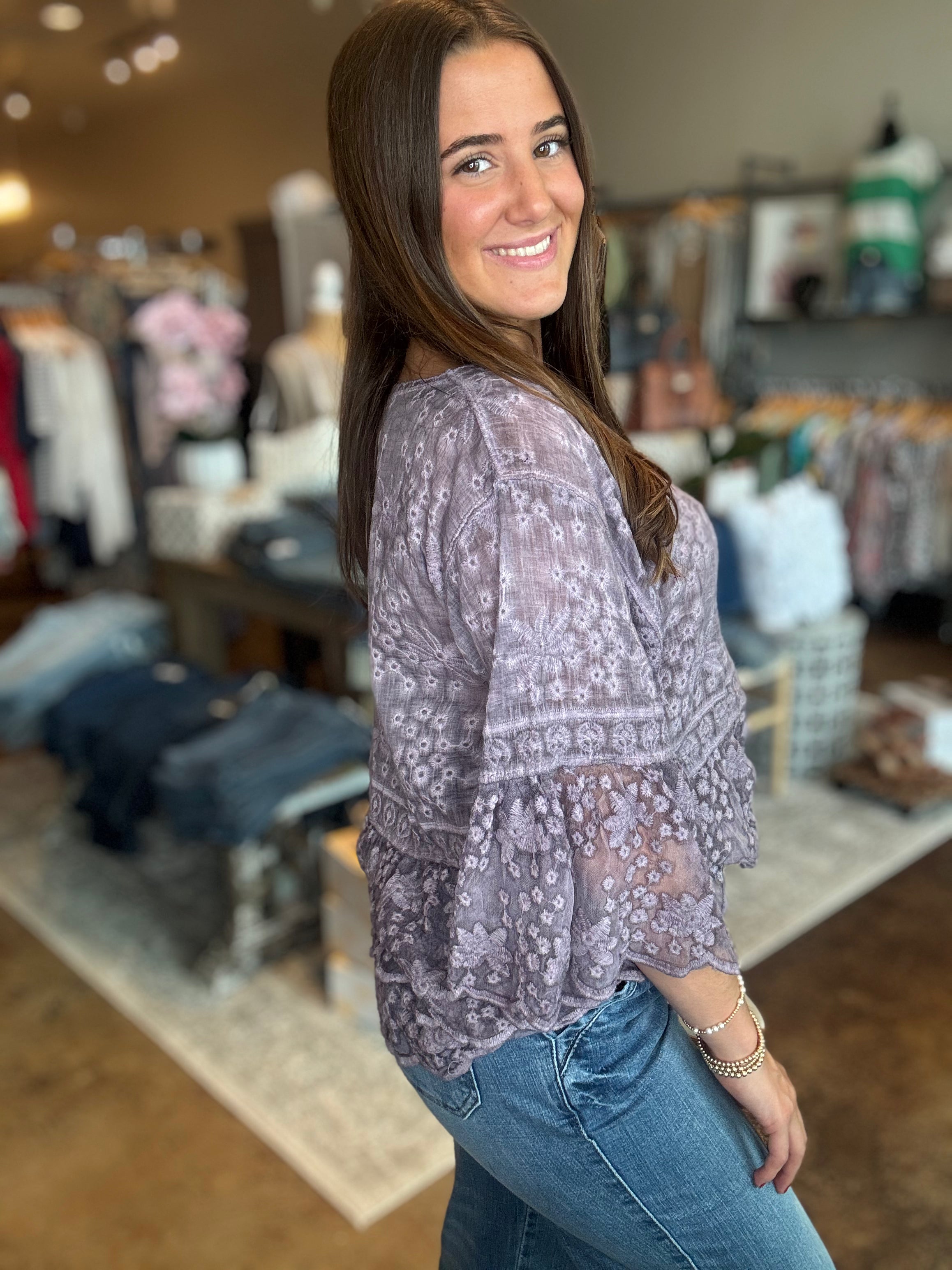 3/4 Bell Sleeve Lace Top