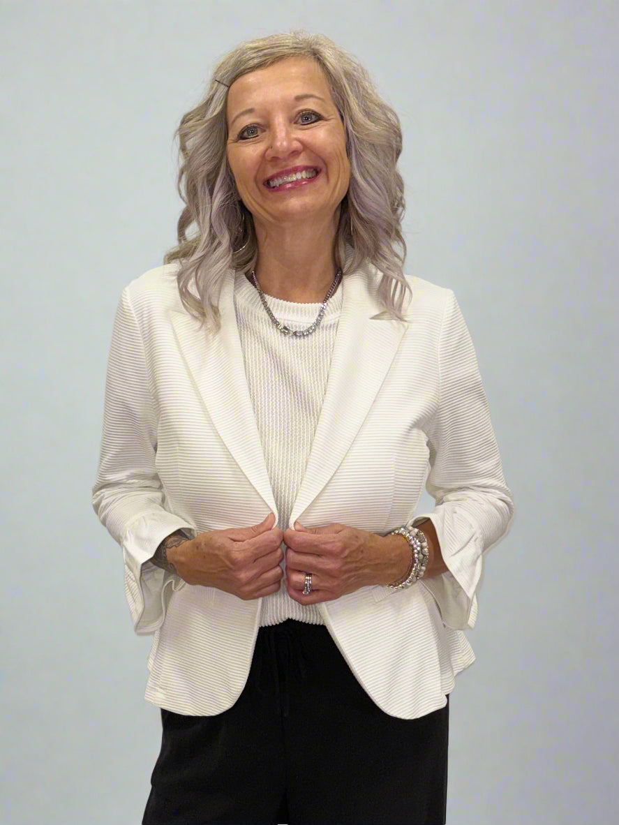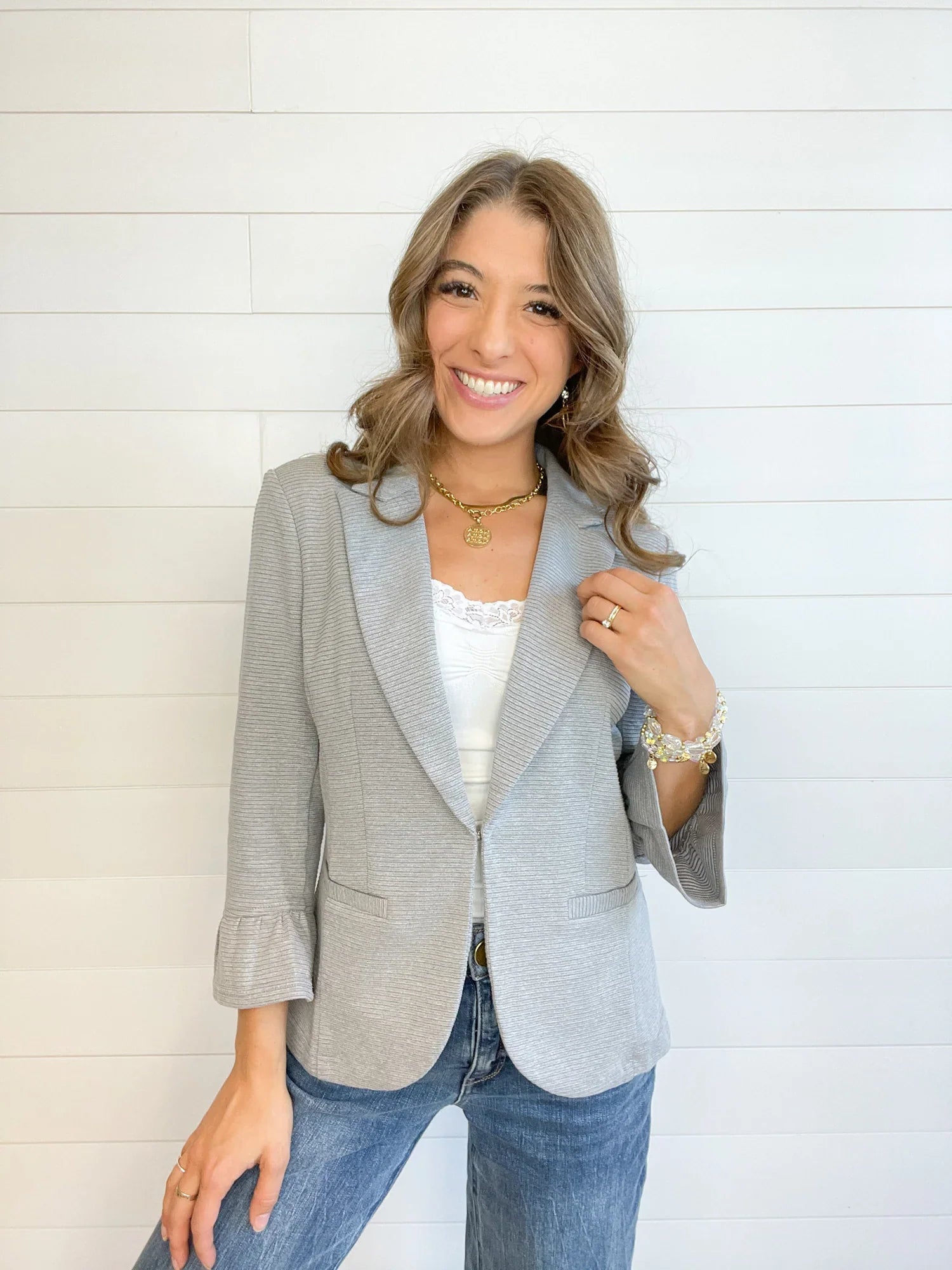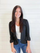 Add a flirty twist to your wardrobe with this 3/4 ruffle sleeve solid blazer! The playful ruffle detail on the sleeves brings fun and flair to a classic silhouette, making it perfect for days when you want to look sharp but feel fabulous. Whether you're heading to a meeting or out for brunch, this blazer adds a splash of personality to any outfit.