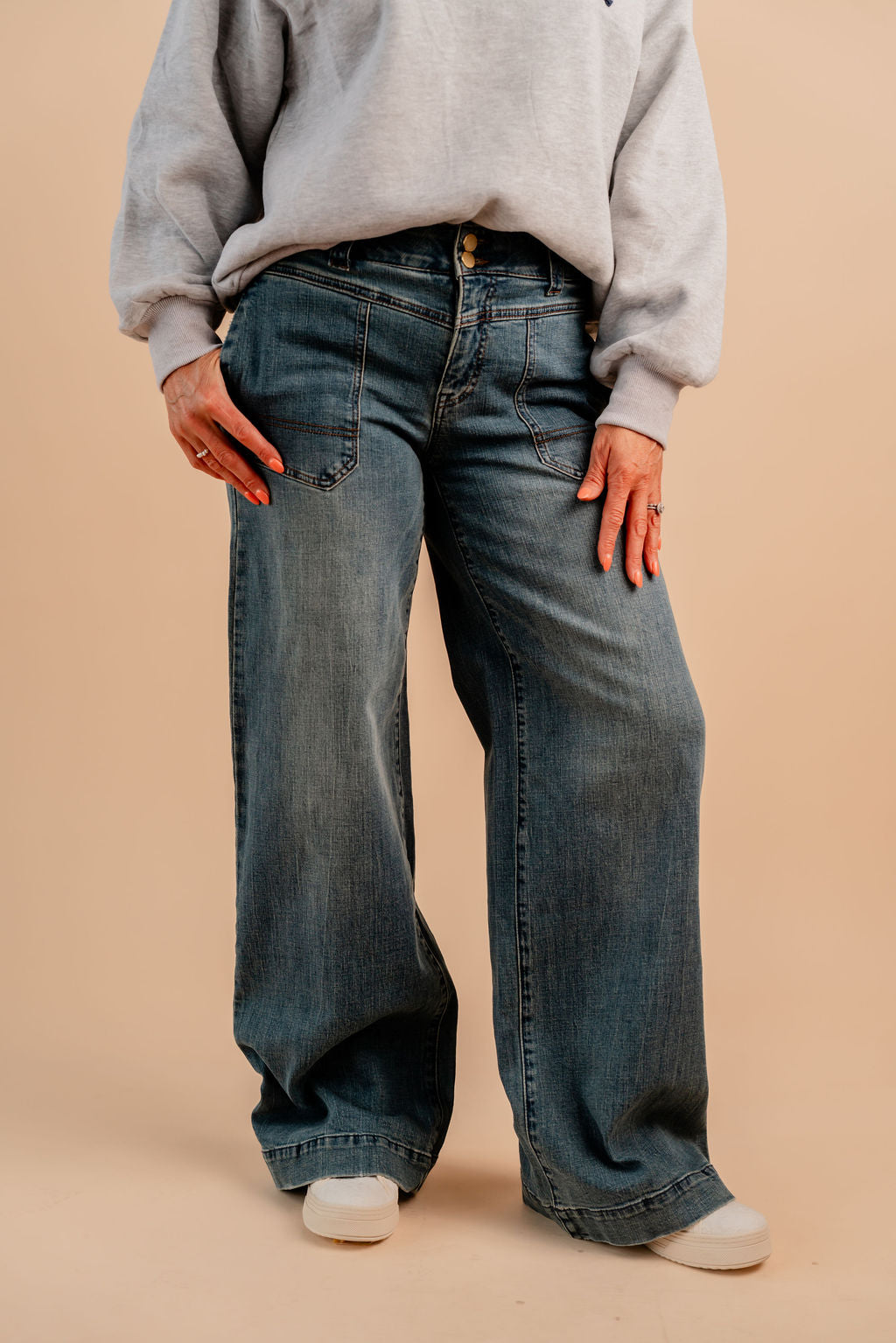 Step into a world of comfort and style with the "AB" Solution Highrise V-yoke Side Entry Porkchop Wide Leg pants. These wide-leg wonders lift your look while keeping it breezy and fun. The highrise fit and flattering V-yoke detail sculpt your silhouette, and the unique side entry adds a quirky twist. Perfect for those who love a playful blend of bold design and effortless wearability.