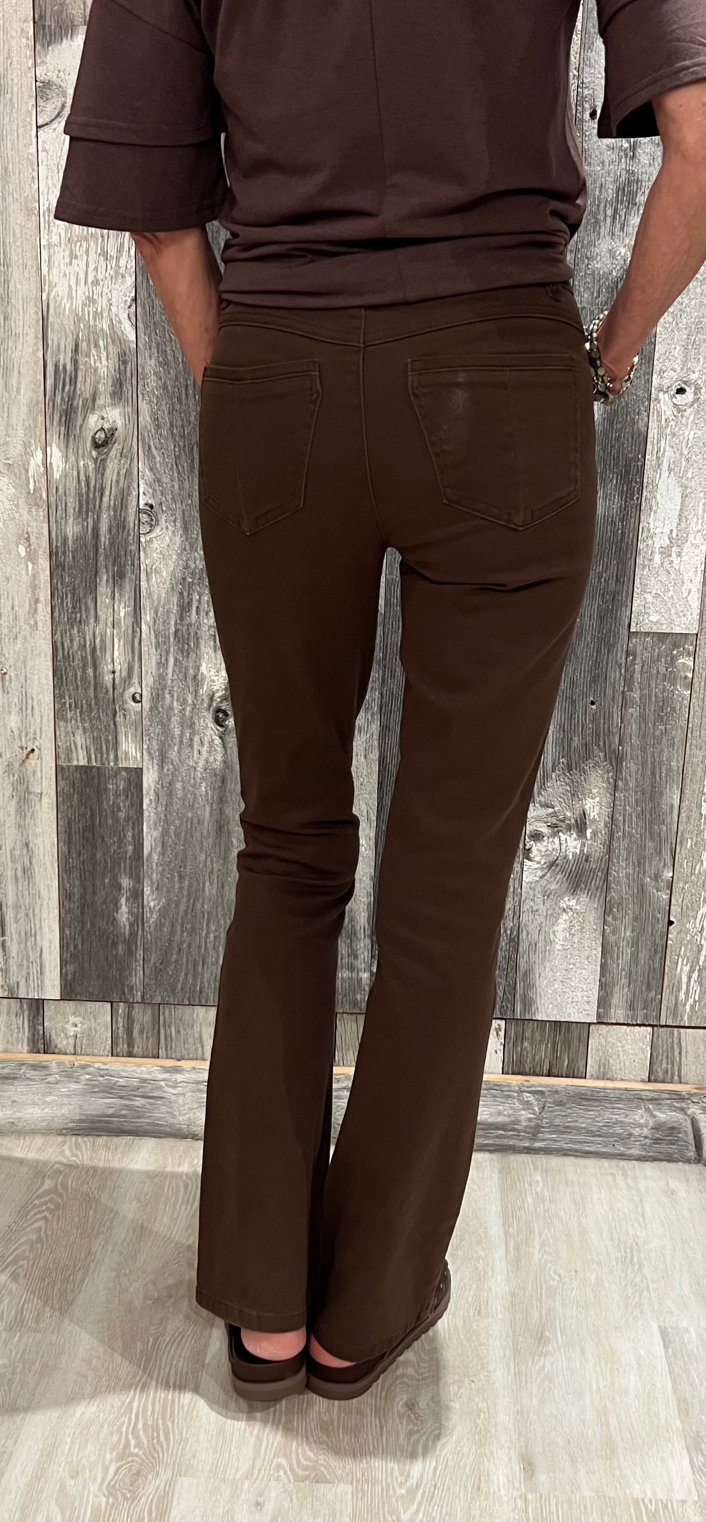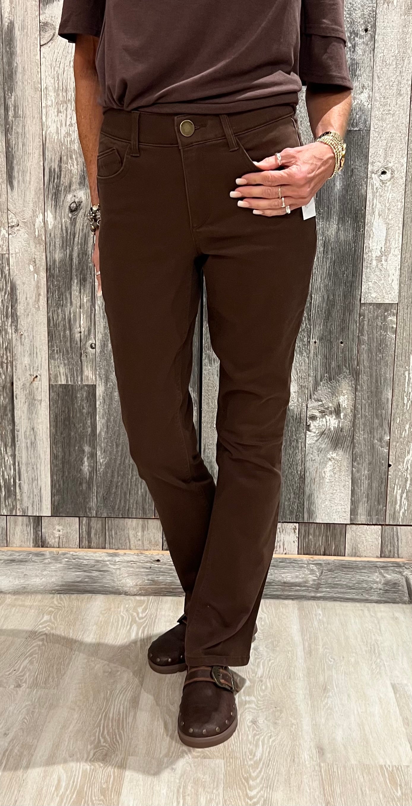 Chocolate brown stretch twill pants