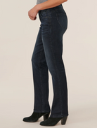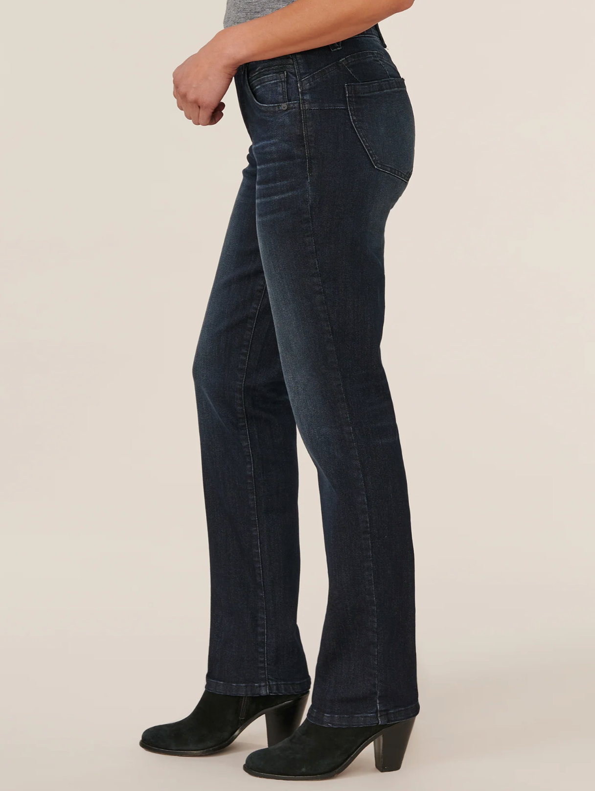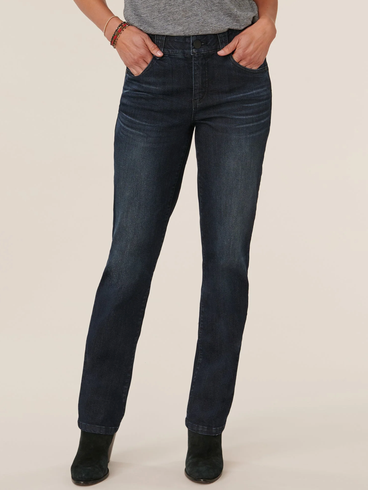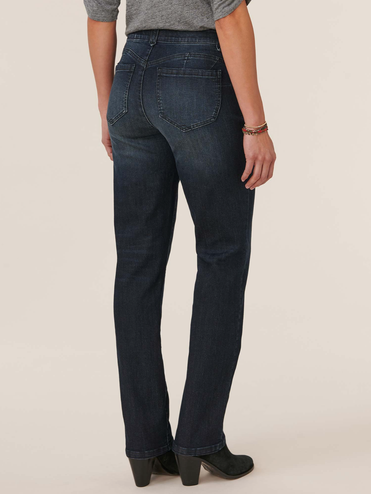 A classy dark wash straight leg jean. These are PETITE, and have a 28" inseam.