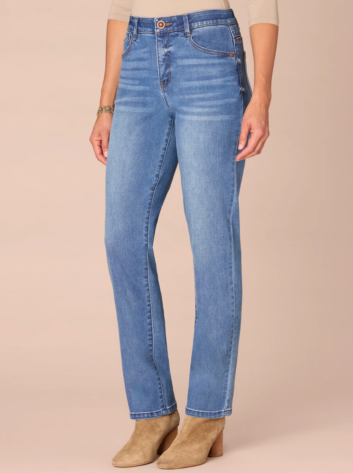 High rise, straight leg jean.