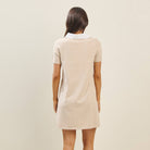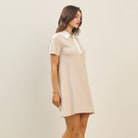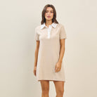 Colorblock polo dress - Sweater mini dress - Ruffle detail - Short sleeves - Collared dress - Polo dress Model measurements: 5'8" tall Model is wearing a US size Small.