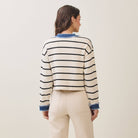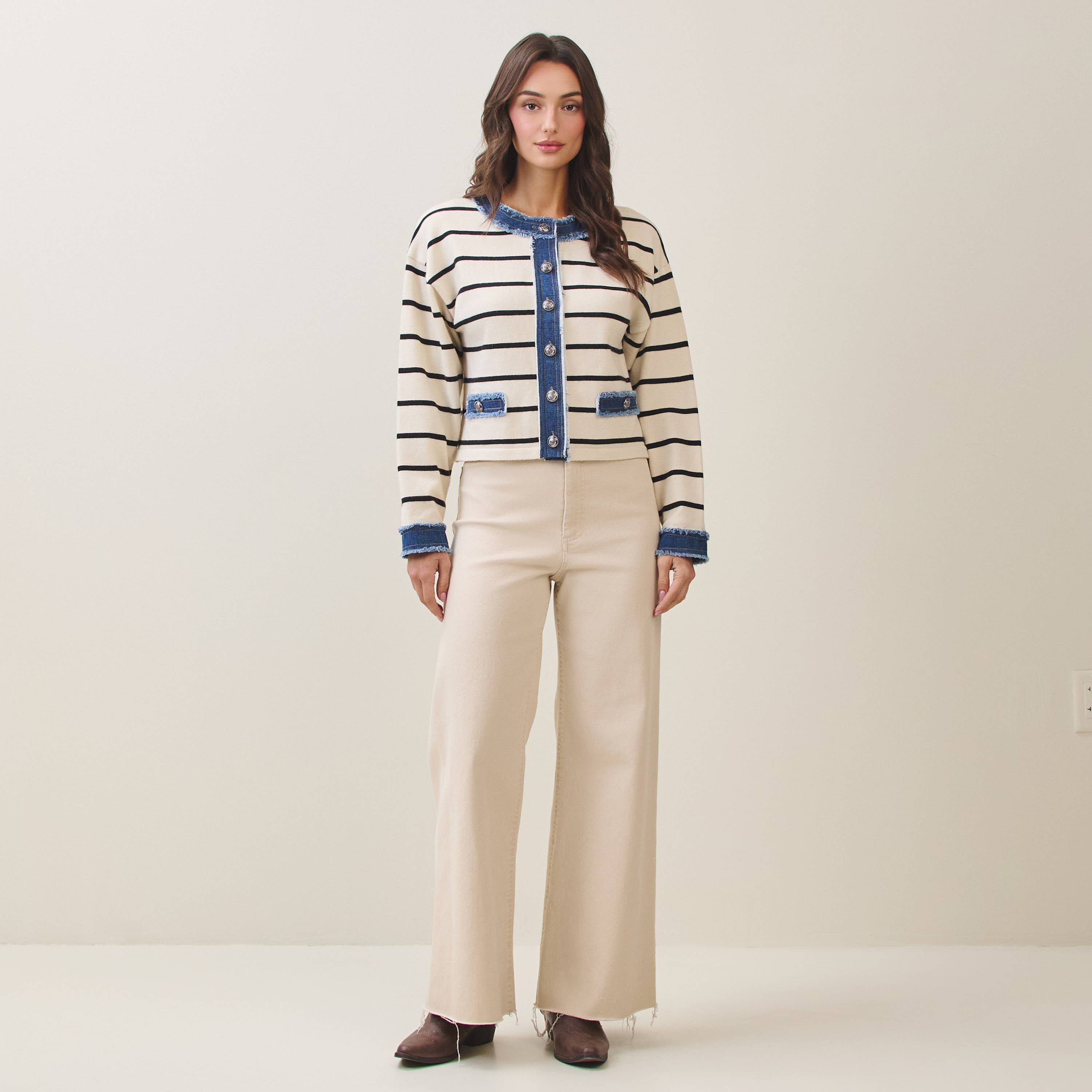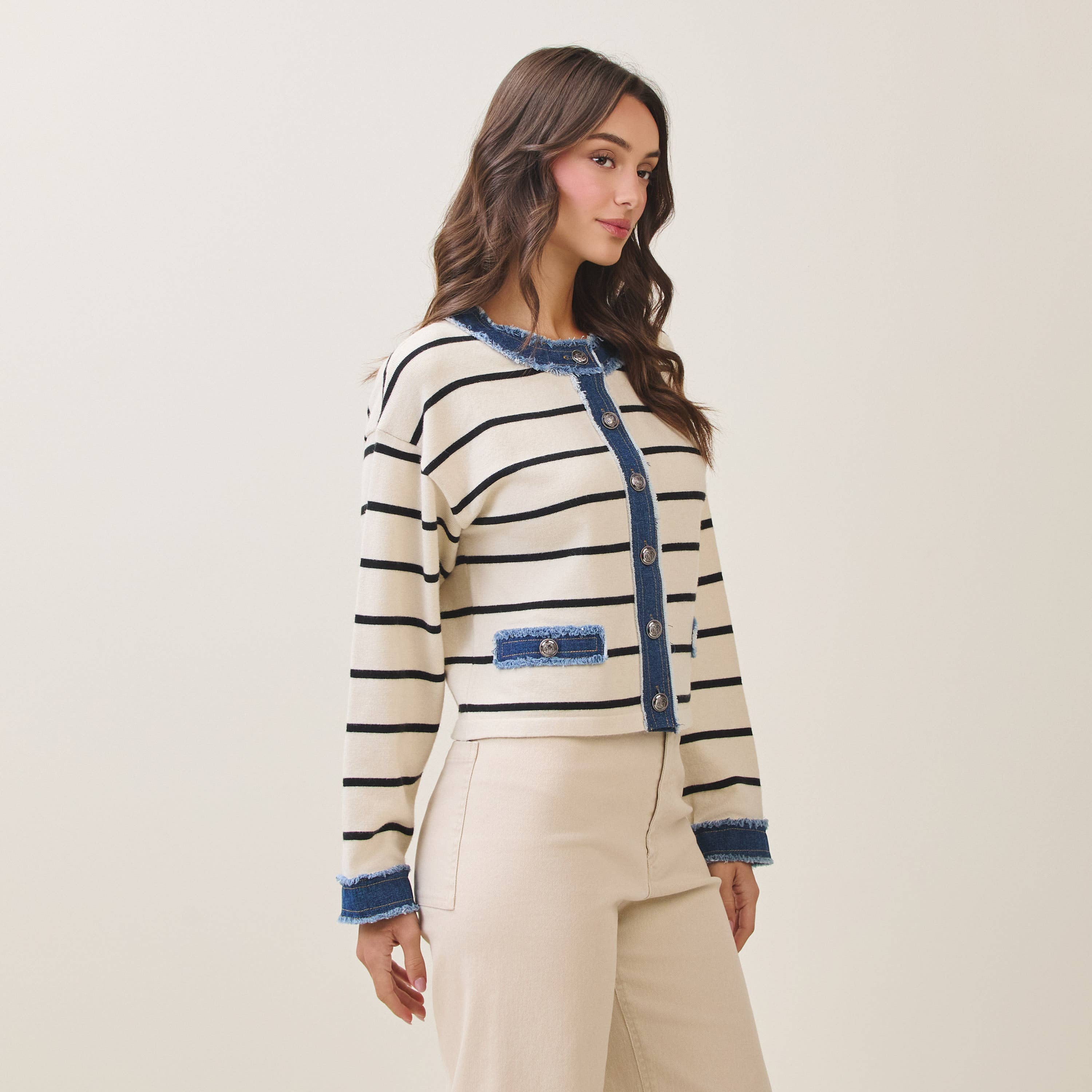Able Denim Mixed Stripe Sweater Cardigan - Cream/Black