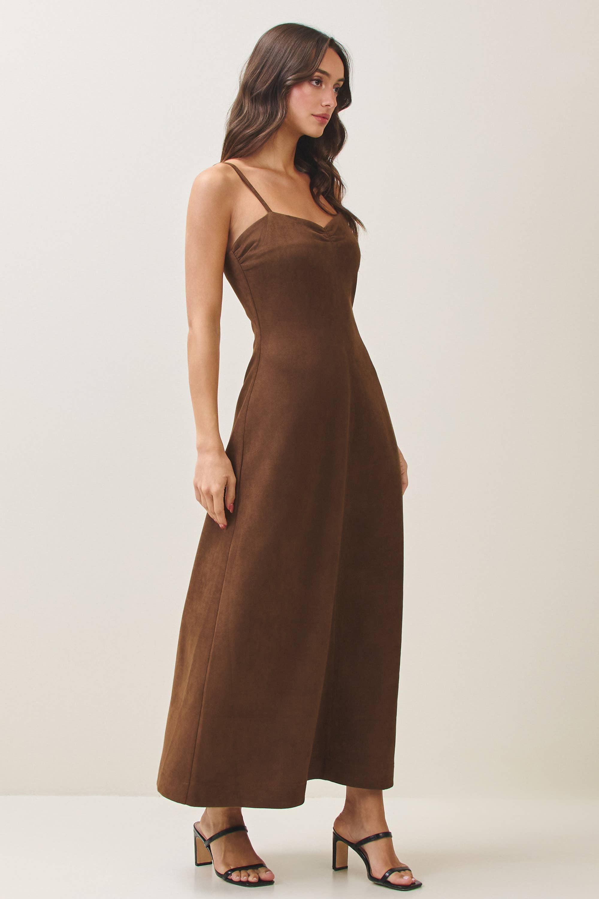 Vegan suede cami dress - Maxi dress - Sleeveless - Faux leather dress Model measurements: 5'8" tall Model is wearing a US size Small.