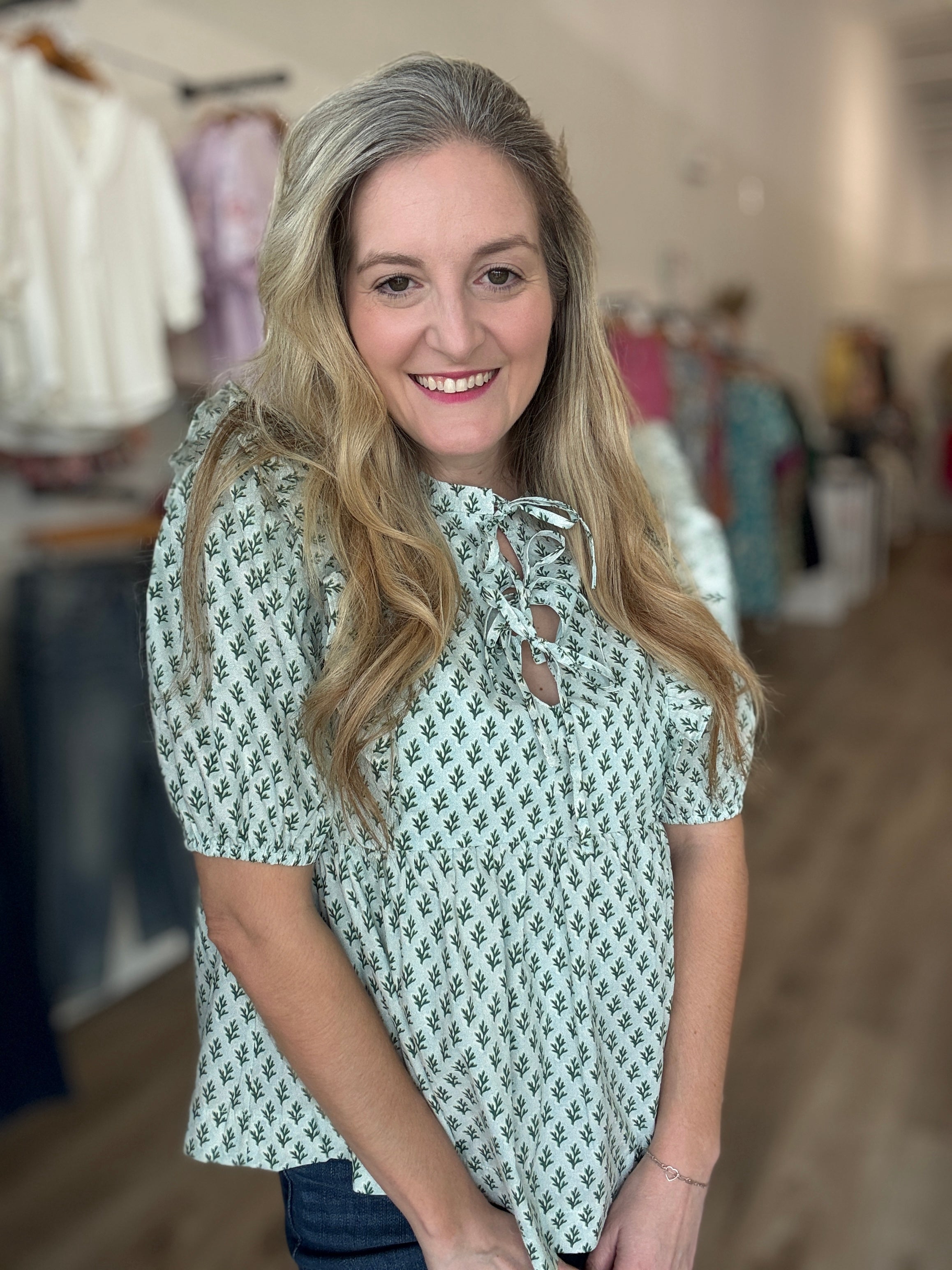 Elevate your style with our Abstract Print Top featuring a front ribbon tie and delicate ruffle details. The unique abstract print adds a touch of sophistication, while the ribbon tie and ruffle accents create a playful and feminine look. Perfect for any occasion, this top is a must-have for any fashion-forward individual!