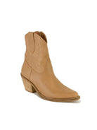 The Adela ankle boots feature a timeless western silhouette with intricate stitching on the shaft. These ankle boots offer a stacked block heel for comfort and style, perfect for casual or dressy occasions.
