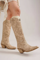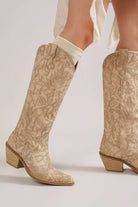 The Adela boots combine classic western style with intricate floral embossing for a standout look. Featuring a pointed toe and a mid-height heel, these boots are perfect for making a statement while ensuring comfort. The pull-on design with side tabs makes them easy to wear, while the floral detailing adds a feminine touch to the rugged silhouette.