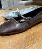 Discover the unique blend of refined elegance and contemporary flair in the ADELE flat in Pewter. This pointed-toe Mary Jane flat elevates your style with its shimmering metallic faux leather finish. The charming buckle strap adds a playful twist, while the cushioned insole provides comfort for day-long wear. Ideal for casual rendezvous and elegant events, these ballet flats bring a chic sophistication to any outfit. Whether styled with tailored trousers, breezy dresses, or sleek skirts, they offer a versatile and timeless appeal that enhances your wardrobe.