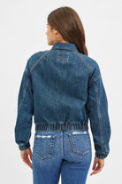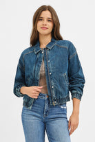 *FINAL SALE* Denim Zip Front Bomber Jacket with Cinched Cuffs and Waistband