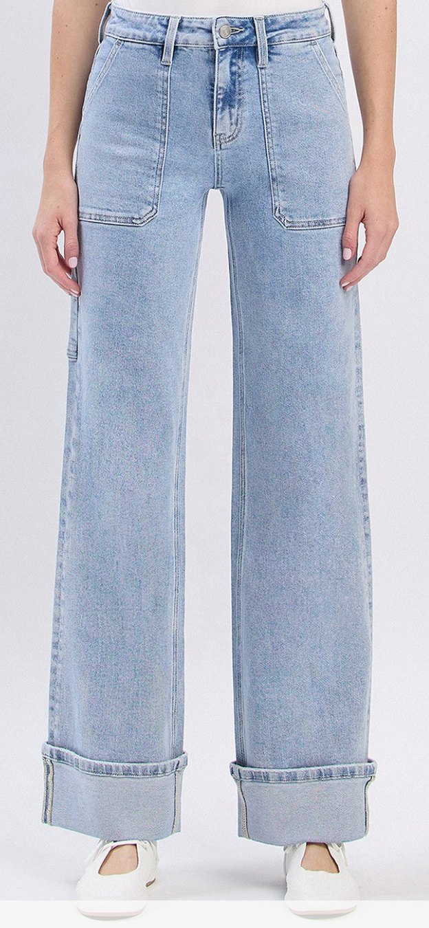 *Final Sale* High Rise Carpenter Pocket Cuffed Wide Leg Jeans