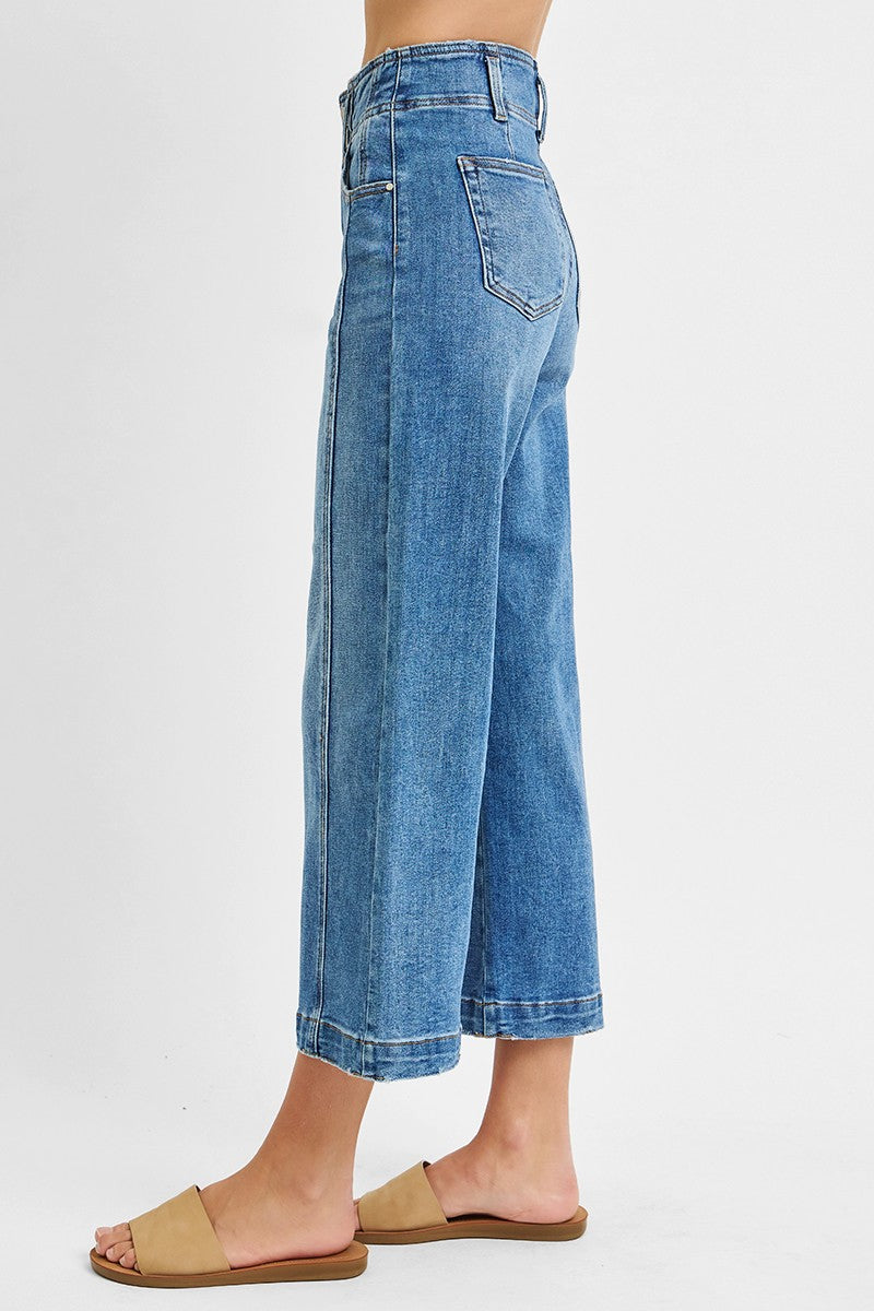 *FINAL SALE* High Rise Crop Wide Leg Jean with Front Seam Detail - 25.5" Ins