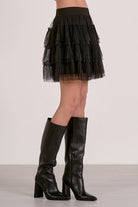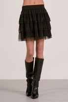 This ethereal layered tulle mini skirt adds a flirty and playful touch to any look with its multiple voluminous tiers of soft mesh. The gathered tulle creates beautiful movement and a delicate silhouette that's perfect for both casual and special occasions. Featuring a comfortable elastic waistband and a built-in lining, this piece is both comfortable and chic, making it an essential addition to your wardrobe.
