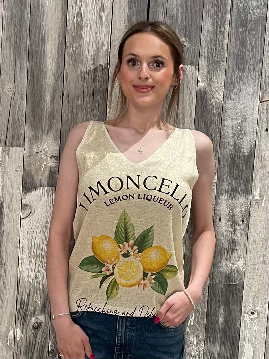 Text: "LIMONCELLO Lemon Liqueur" with tagline “Refreshing & Delicious”