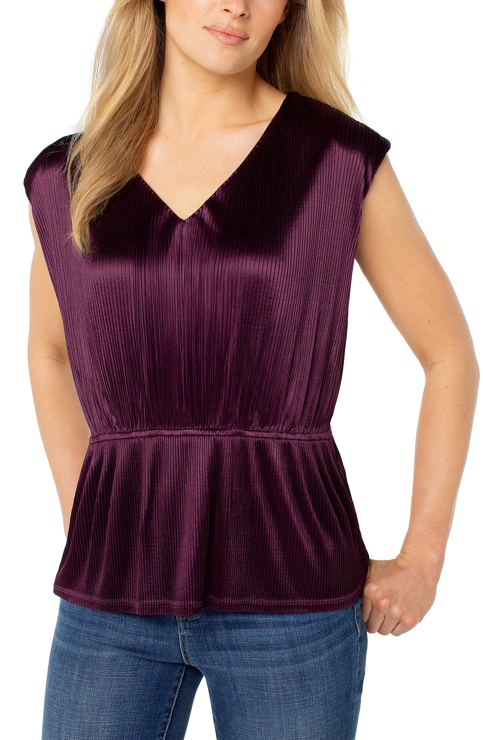 *FINAL SALE* Liverpool Cap Sleeve V Neck Peplum Top