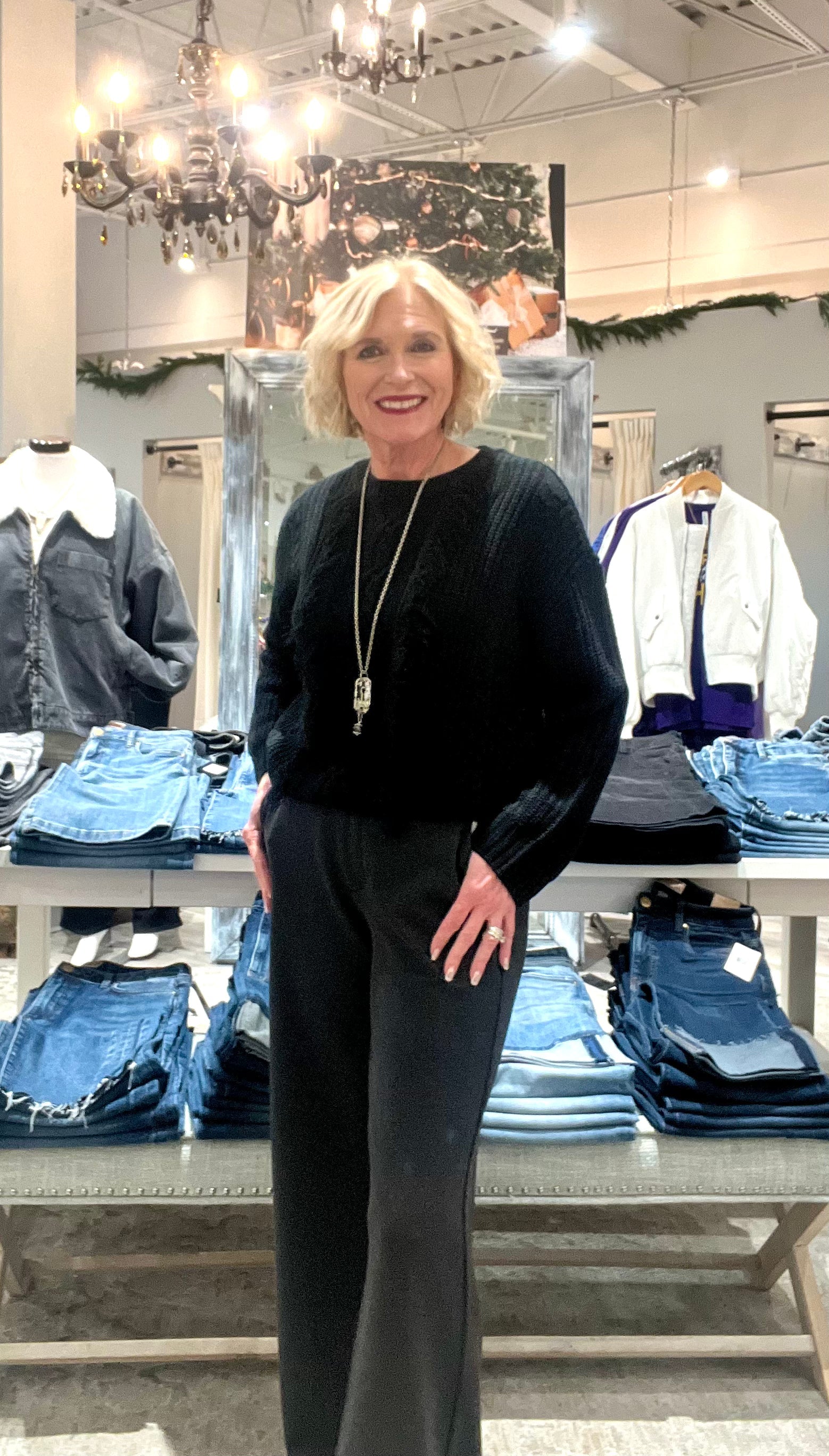 Long Sleeve Crew Neck Sweater with Fringe Detail