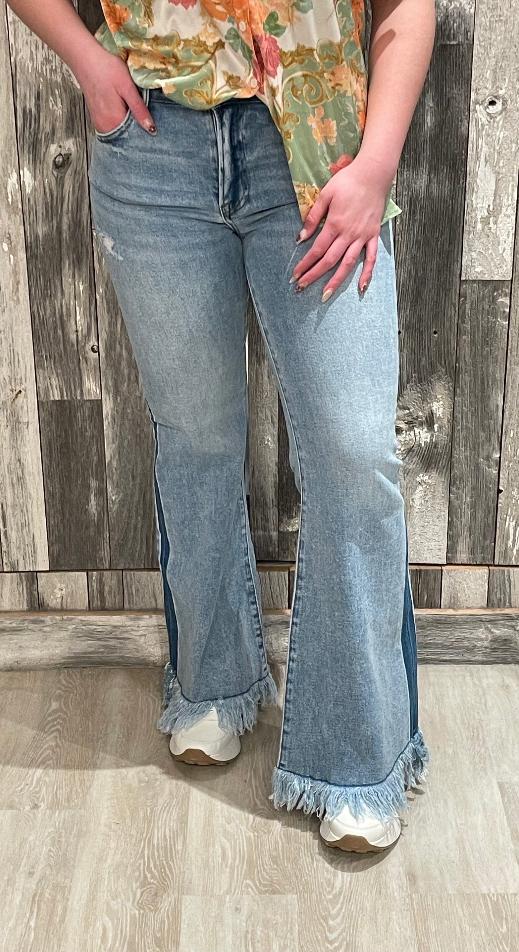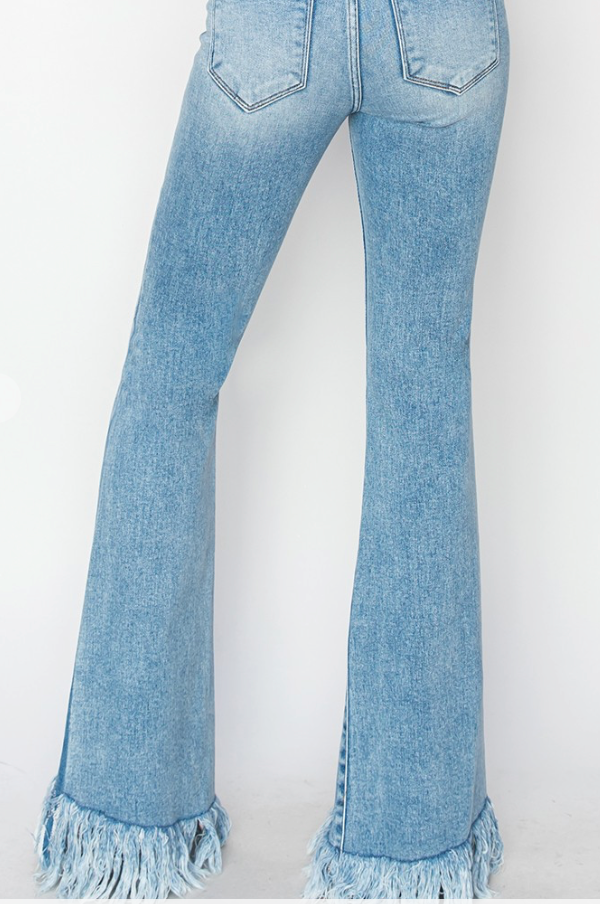 *Final Sale* Mid Rise Flare Long Fray Jeans