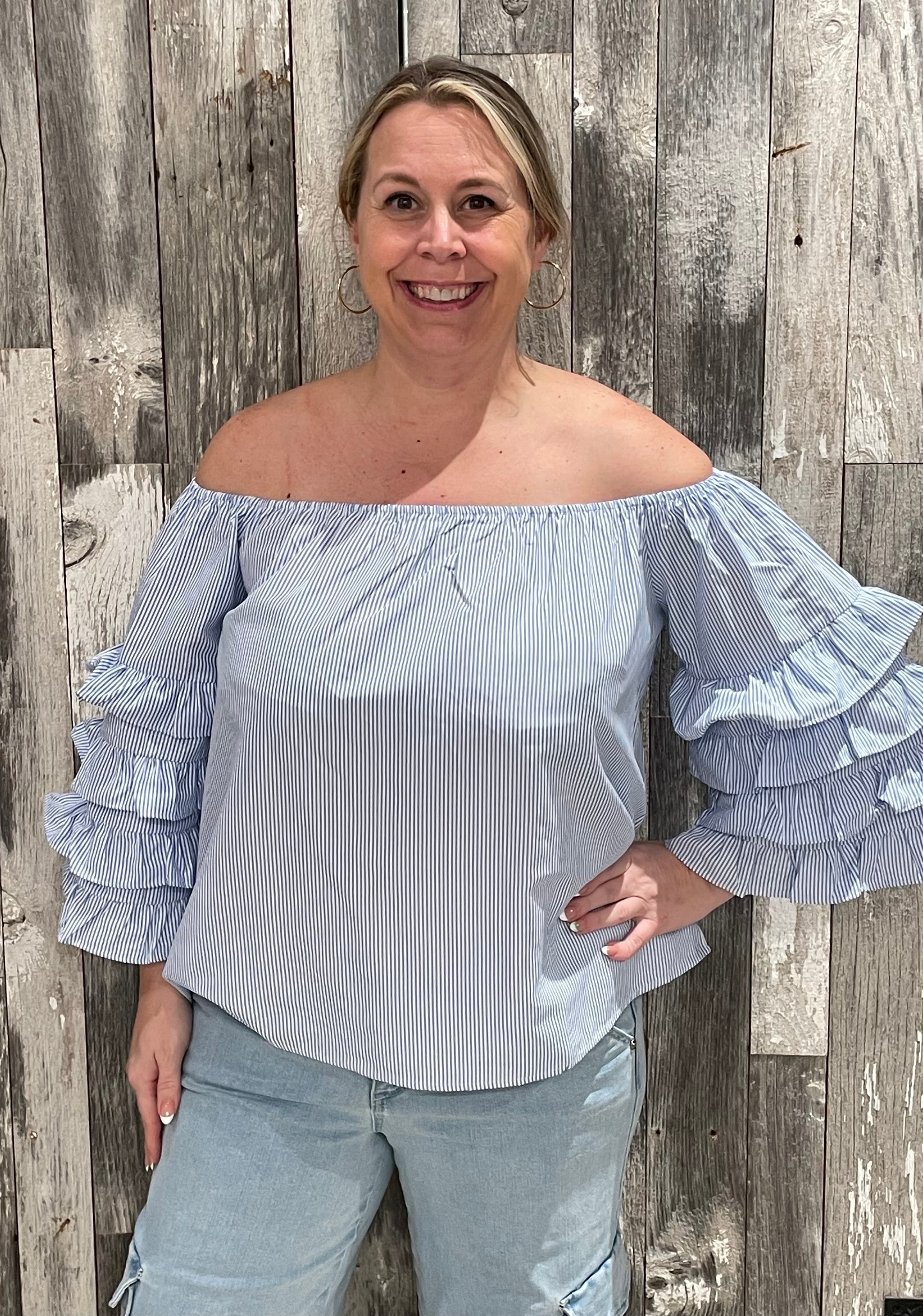 *Final Sale* Off The Shoulder Stripe Print Woven Top