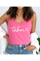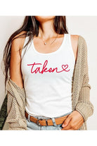 Say it sweetly and stylishly with our “Taken” Racerback Tank! Featuring a bold handwritten-style script and a cute heart accent, this tank is the perfect way to show off your relationship status with confidence and charm.