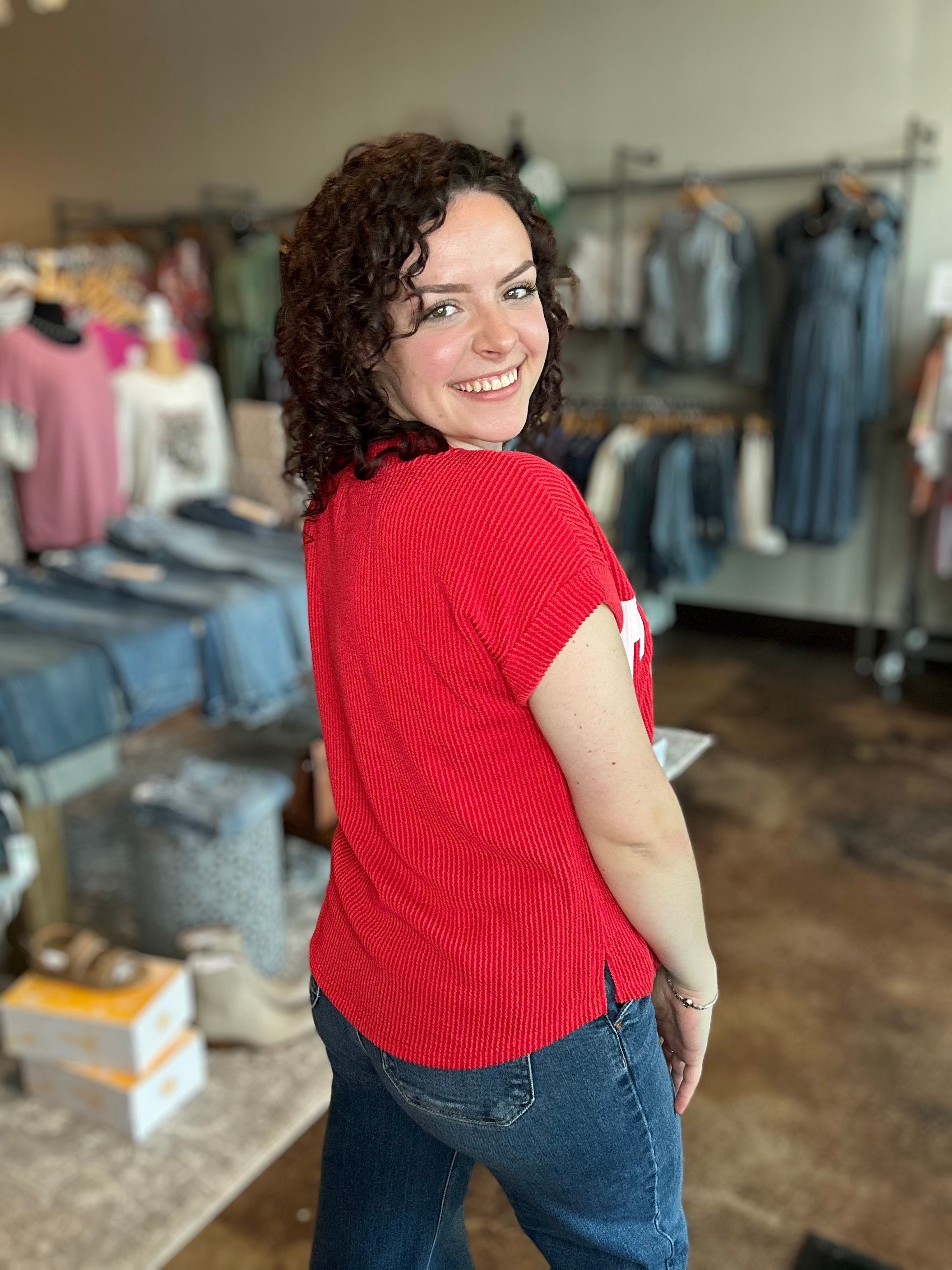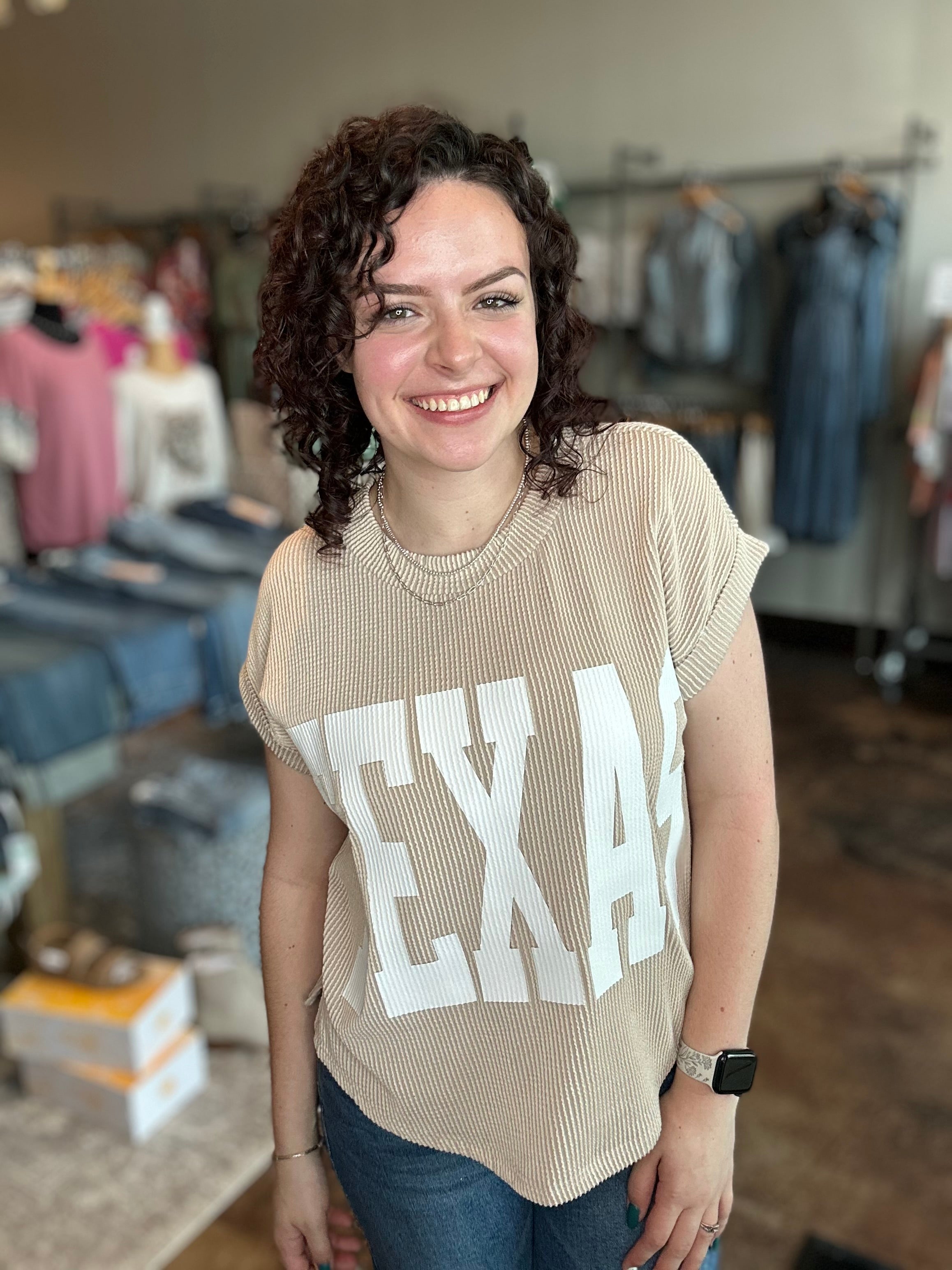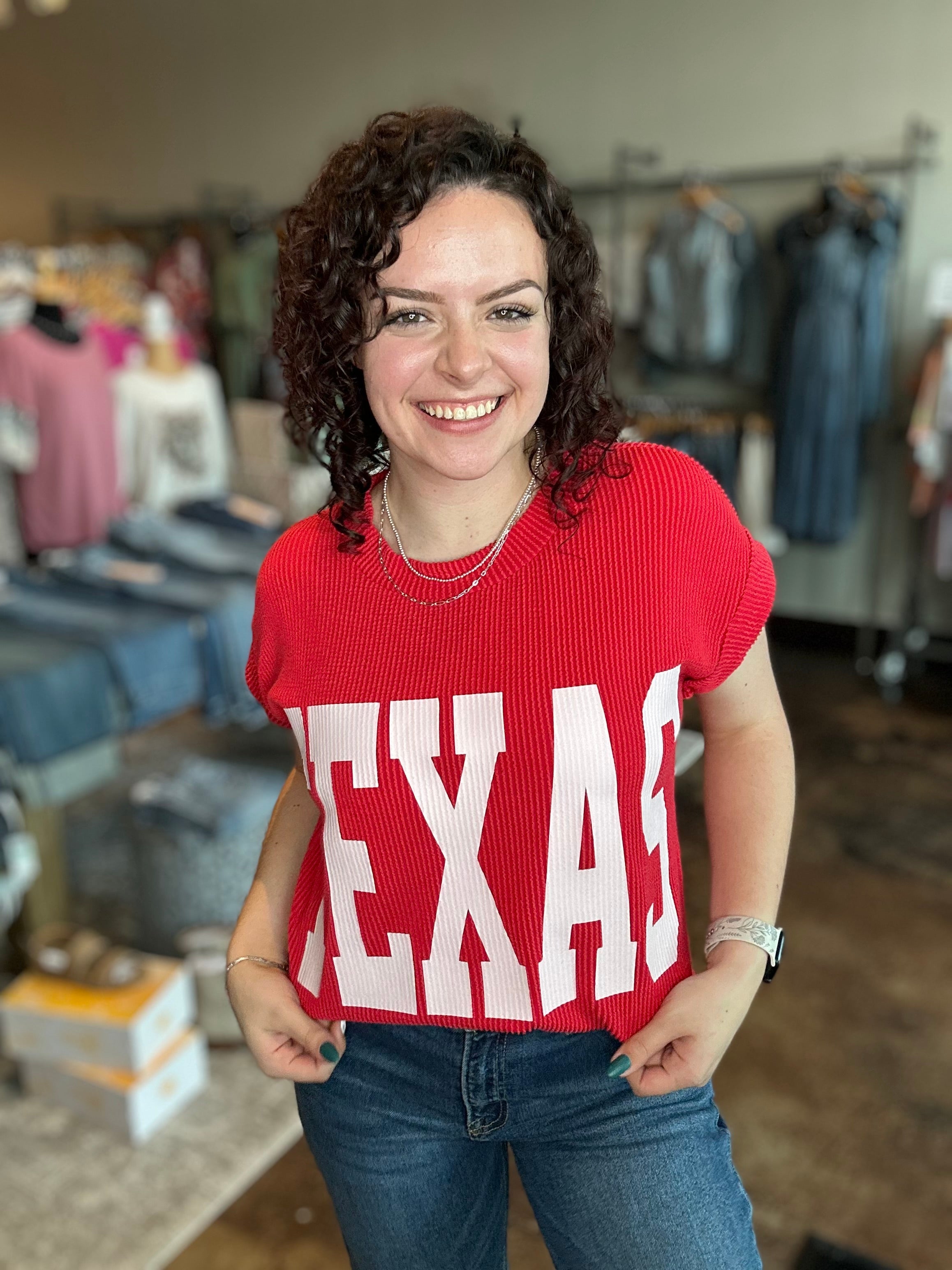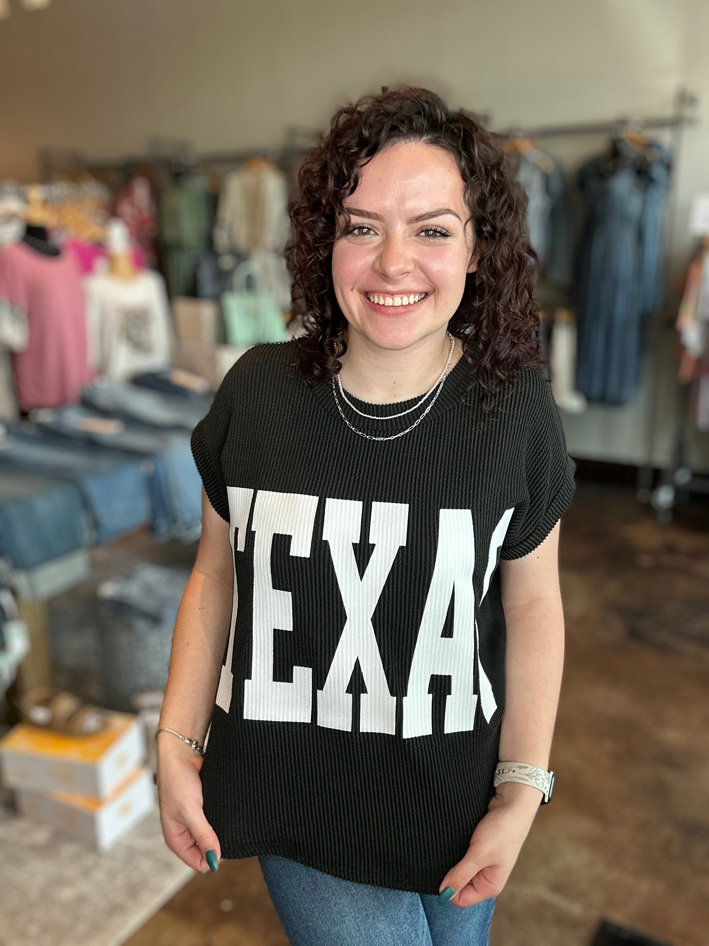 'TEXAS' Graphic Ribbed Knit Top