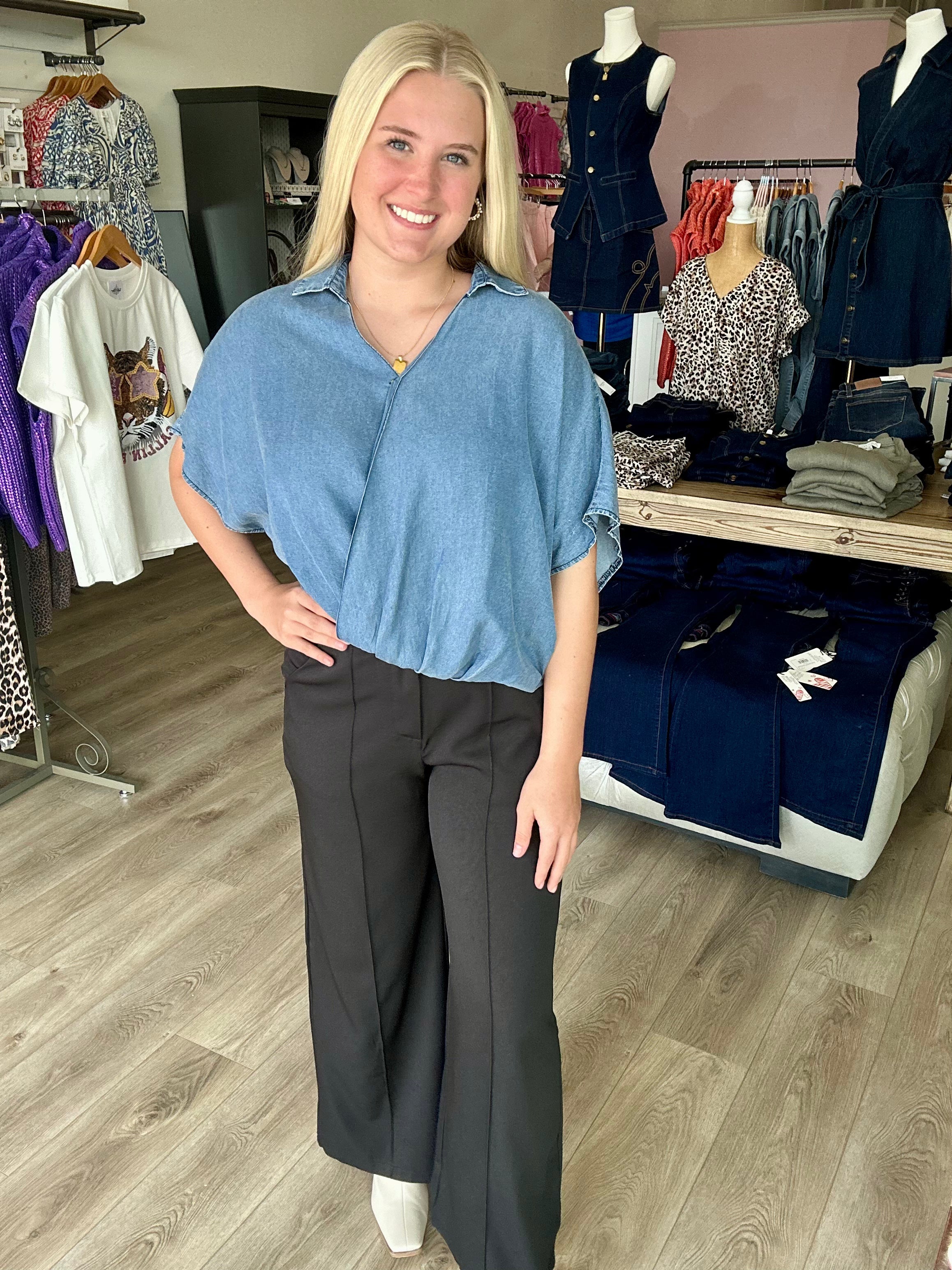 "Experience comfort and style with our WIDE LEG WOVEN PANTS. These pants feature a flattering wide leg design, pintuck details, and convenient pockets. Available in beautiful rose and classic black. Elevate your wardrobe today!"