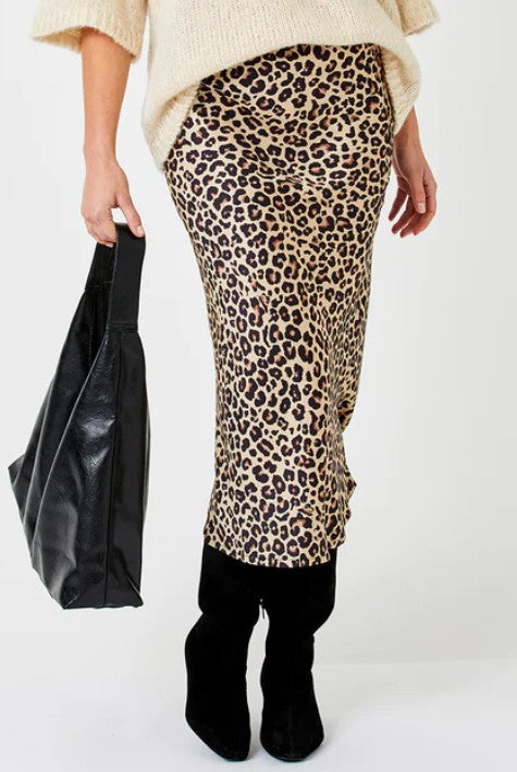 Unleash your fierce side in the Wild Instinct Satin Midi — a silky, leopard-print dream that glides with every step. Designed with a fluid satin finish and effortless pull-on style, it’s equal parts sleek and bold. Pair it with an oversized sweater and tall boots for city-chic confidence, or swap in heels and a fitted top for a night that roars.