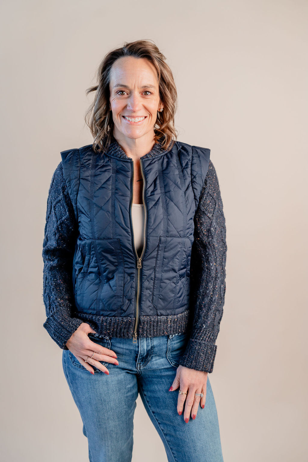 Stay cozy and stylish with this Zip Mock Neck Quilted Vest! Its playful patch pockets add a fun twist while keeping your essentials close. Perfect for layering on breezy days, this vest brings warmth without the bulk and a zip-up mock neck that hugs you just right. Whether you're out for a stroll or running errands, it's your new go-to for effortless cool and comfort.
